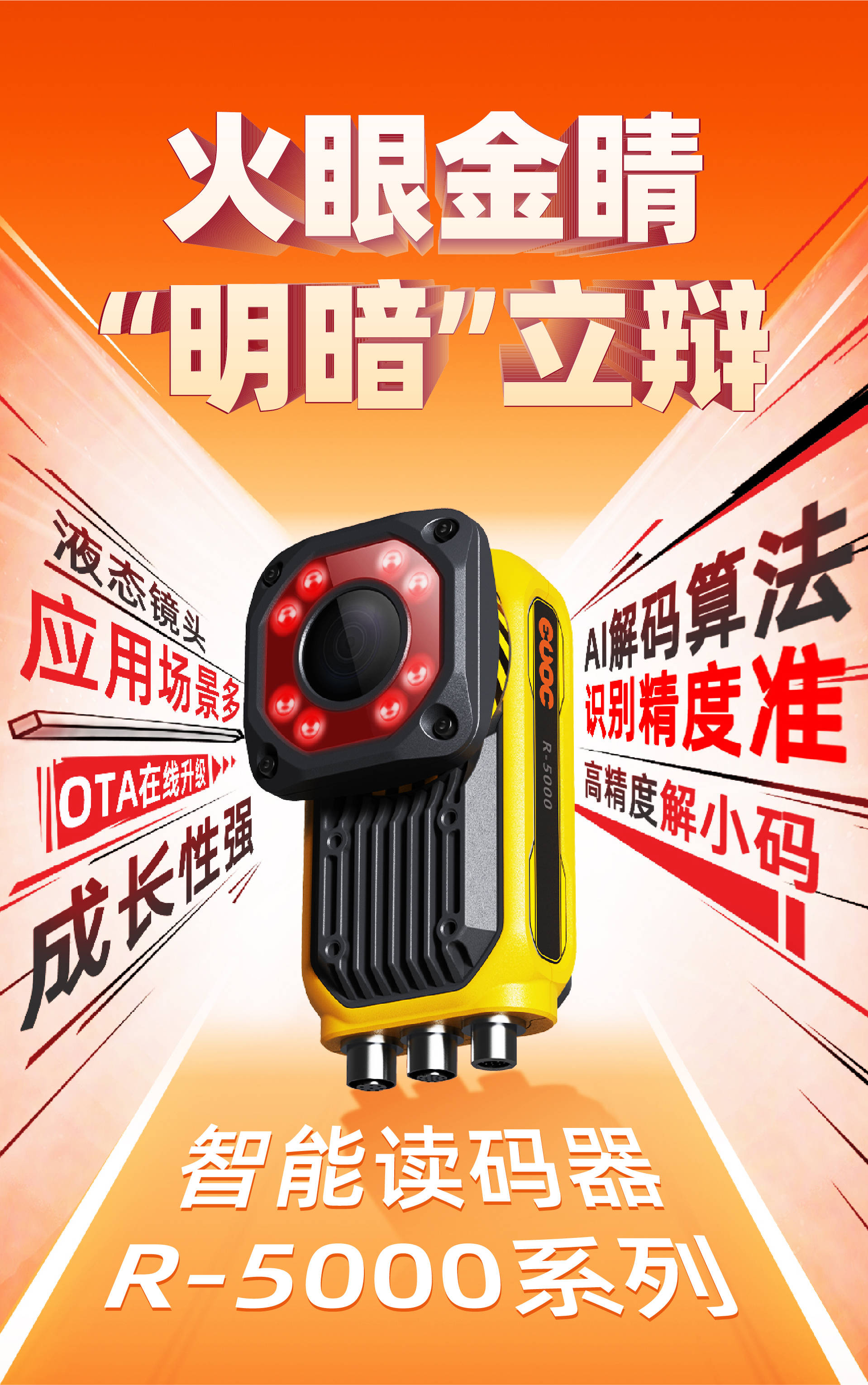 在搬運(yùn)和出貨環(huán)節(jié),配置了業(yè)內(nèi)全新液態(tài)鏡頭的R-5000負(fù)責(zé)在搬運(yùn)工序中進(jìn)行分類、讀取紙箱上各種條碼,不管是臟污、變形、反光、褶皺、還是打印質(zhì)量差,R-5000通通“一眼看穿”。